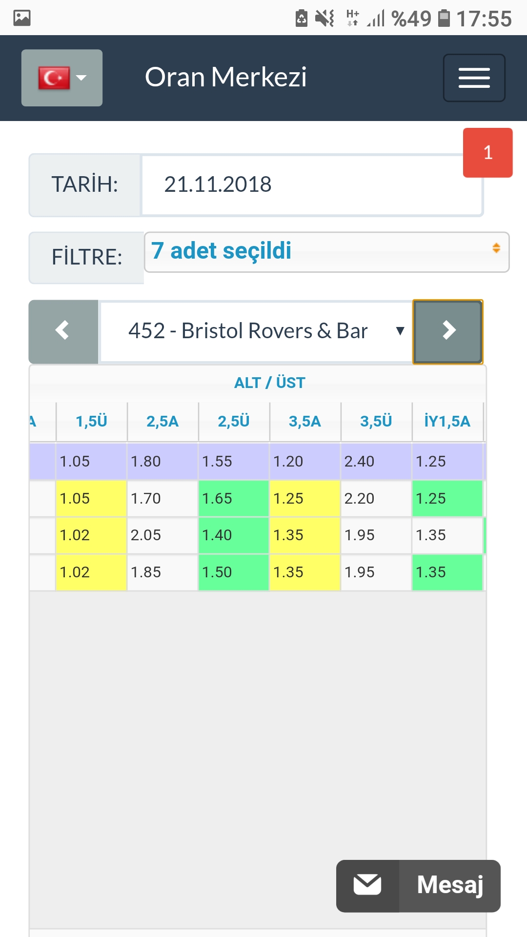 Arkadaşlar an itibari ile bulmuş bulunmaktayım aynı oranlarda açılmış maçları değerlendirip bi sonuca vardım genelde ilk yarı(x ) (1)yada (2) almış durumda 2.5 alt yada üst bitmiş durumda. Toplam gol sayıları bile aynı bitmiş resim eklicem. :ugeek: